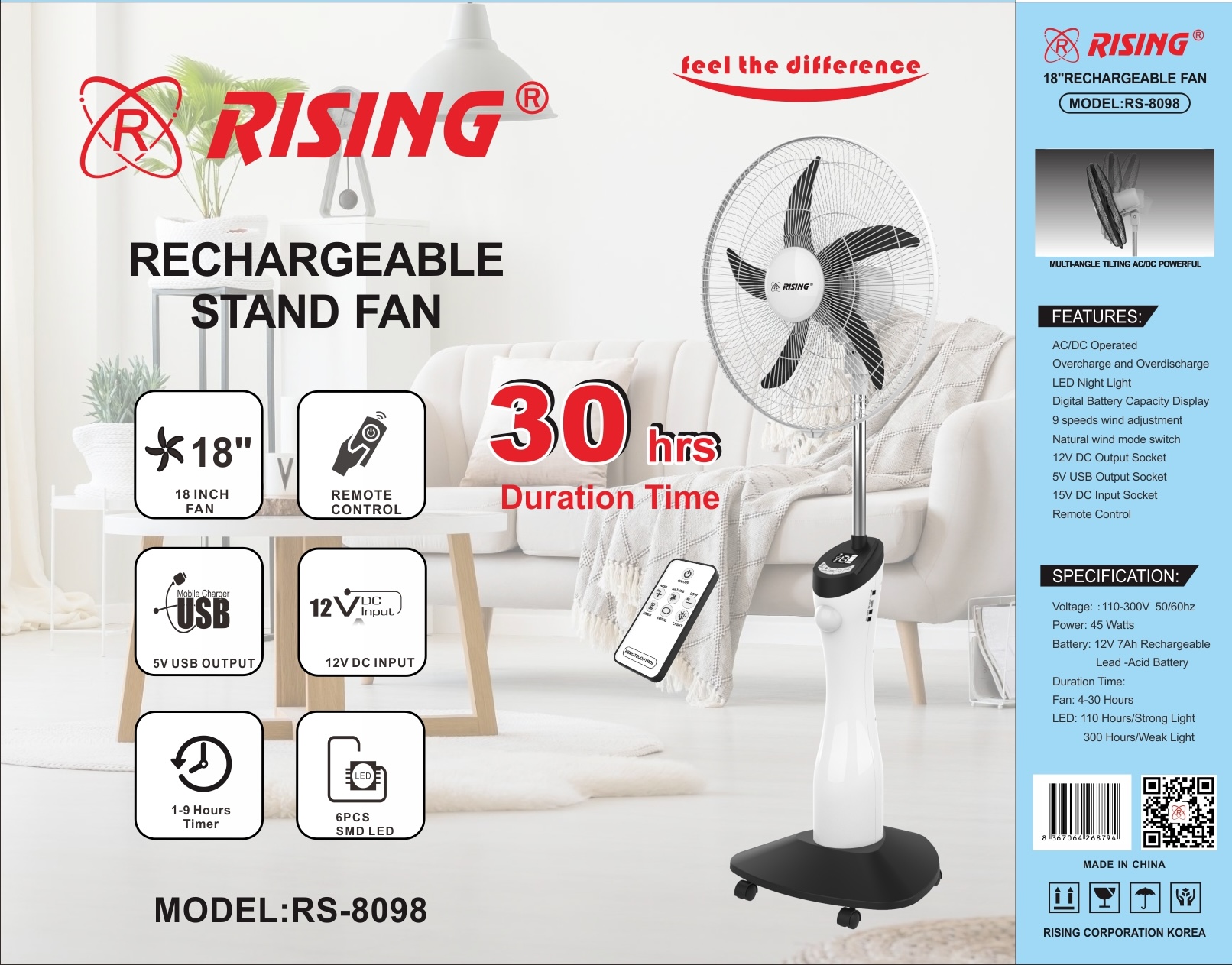 18 Inch Rechargeable Stand Fan RS-8068