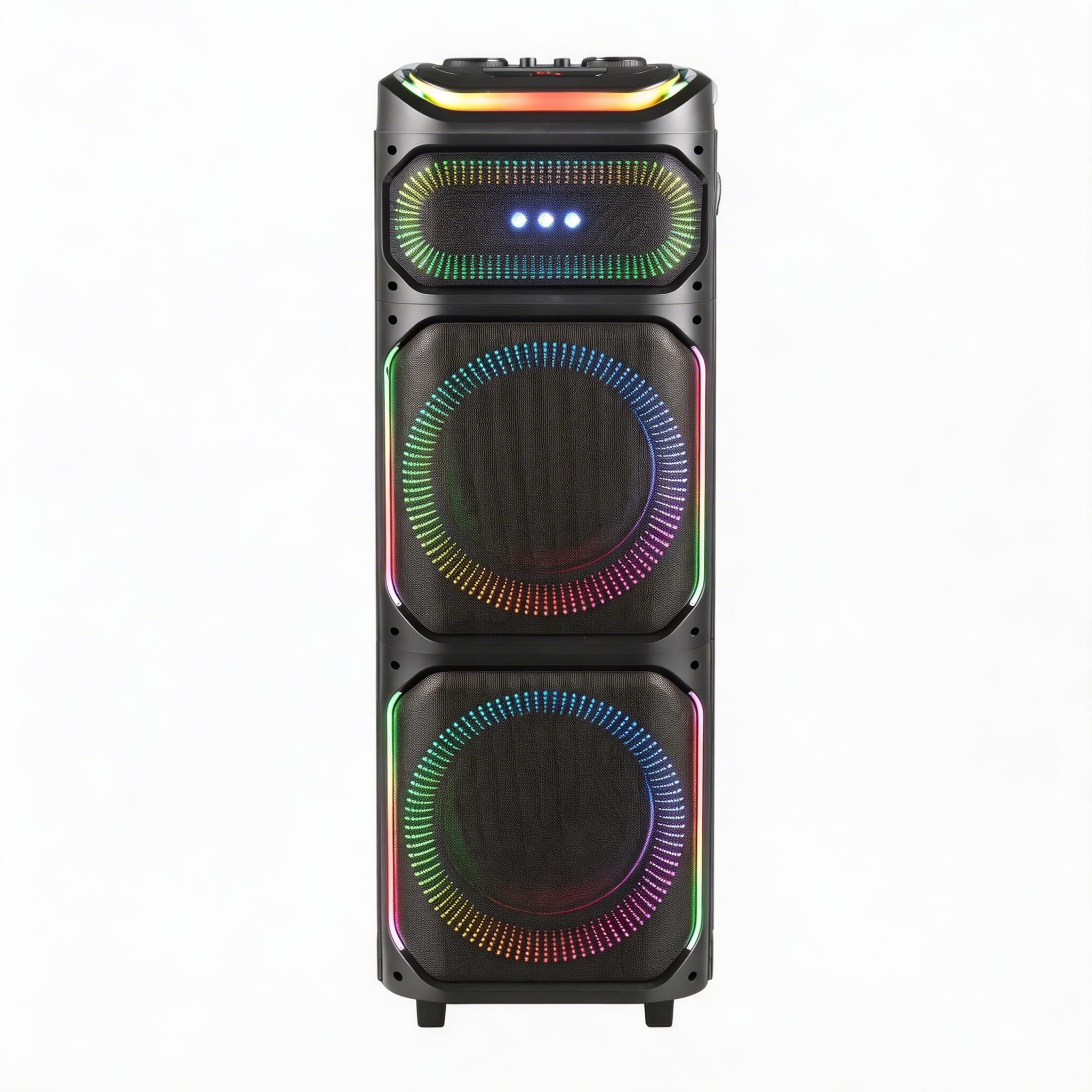 Serious party power. The wooden cabinet construction delivers richer, fuller sound than plastic alternatives. Dual 12-inch speakers plus tweeter handle everything from bass-heavy beats to crystal-clear vocals.