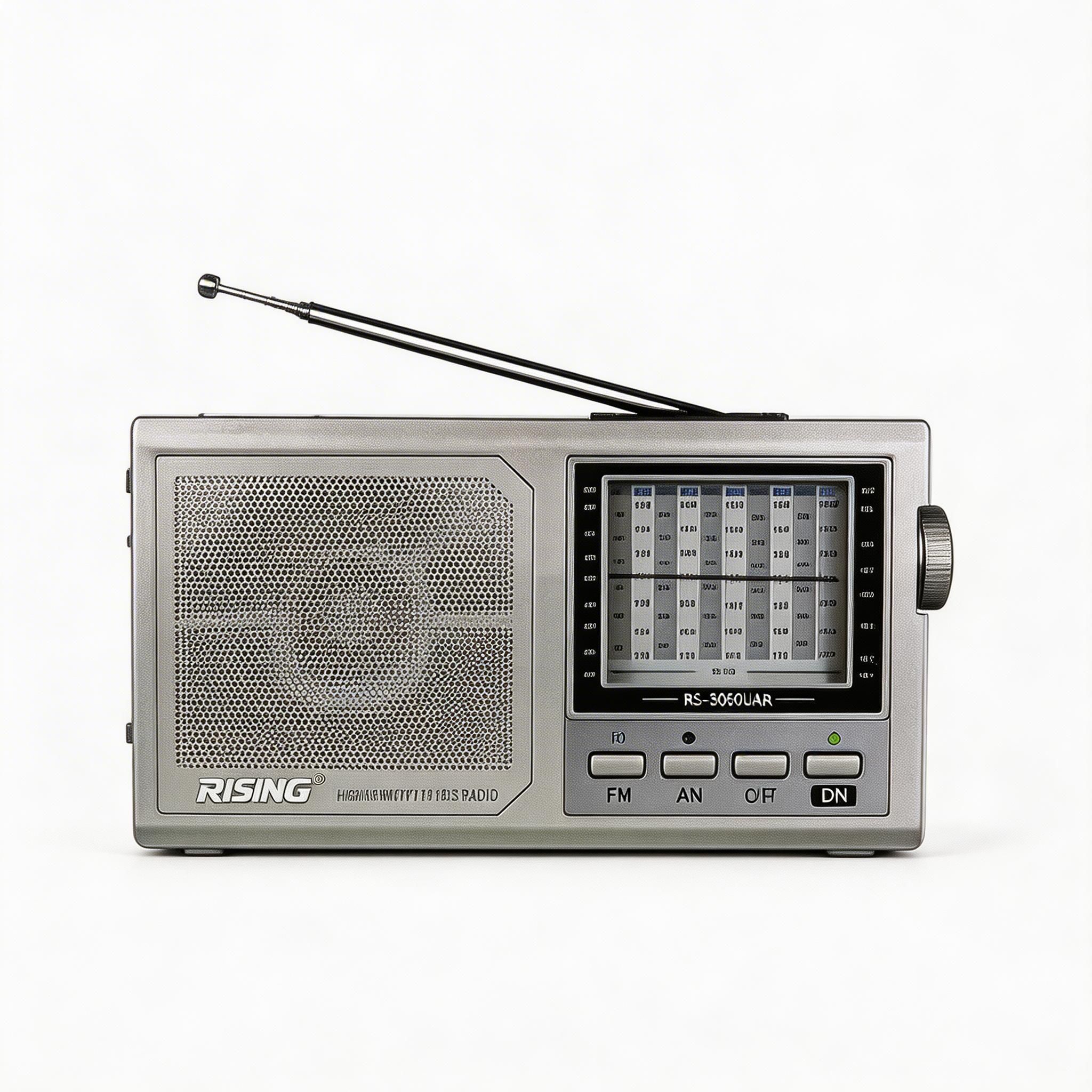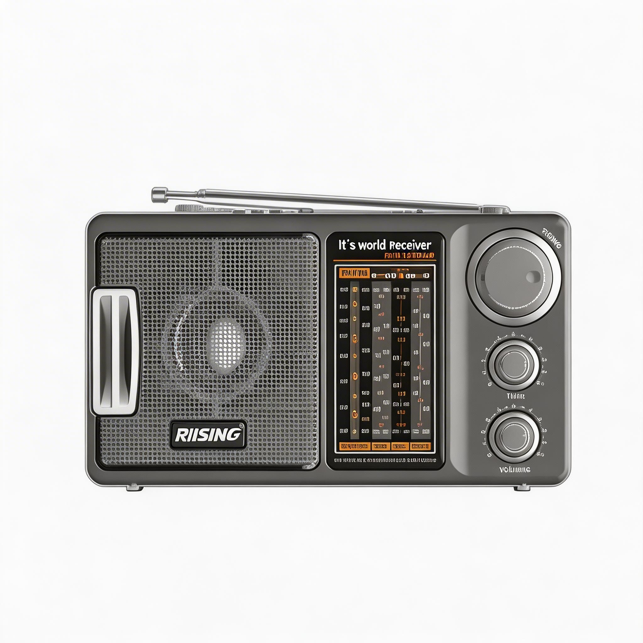 Your window to the world. This world receiver picks up radio broadcasts from across the globe with its 12-band tuning system.