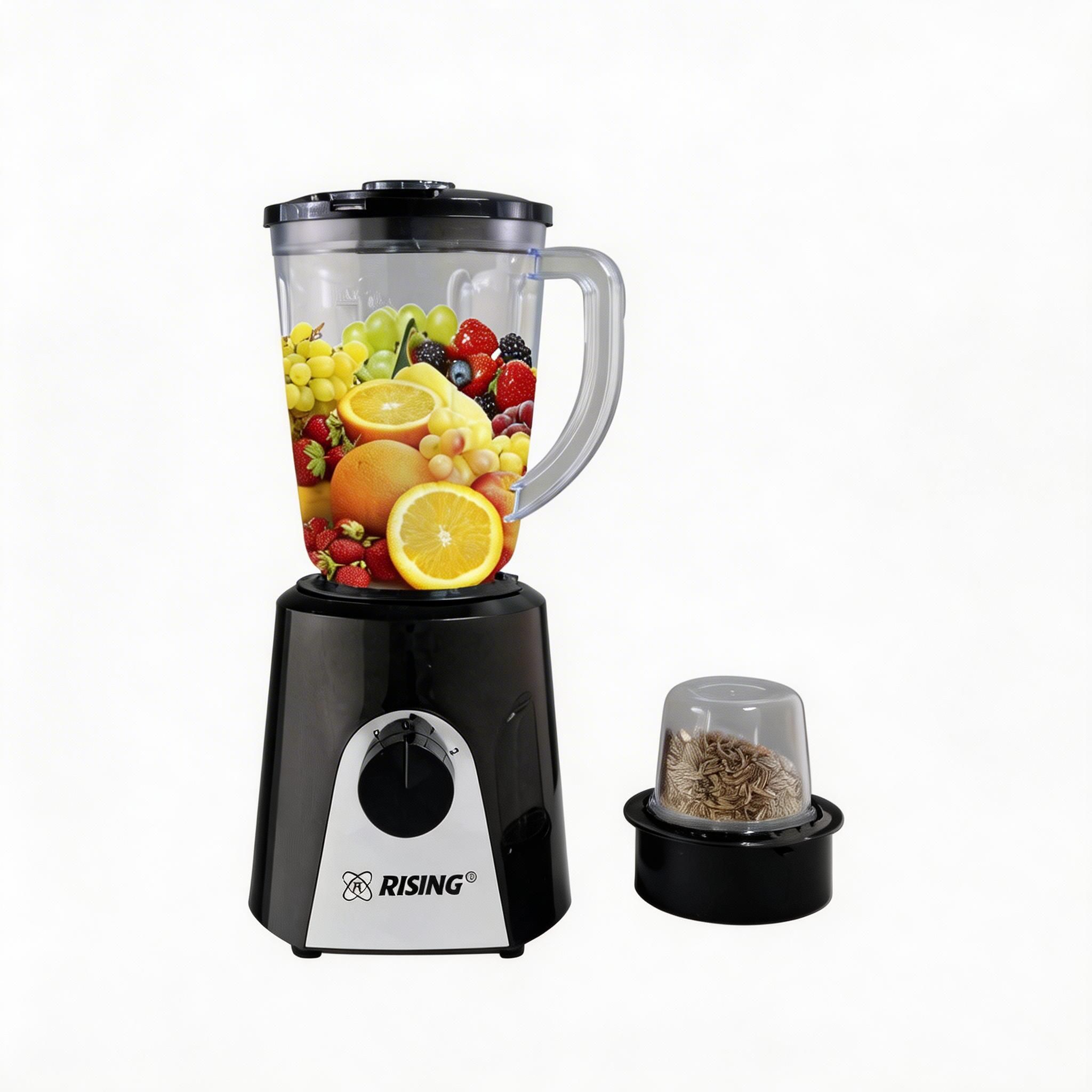 Versatility meets value. This black 2-in-1 blender comes with both a large blending jar and a grinder attachment, perfect for families.